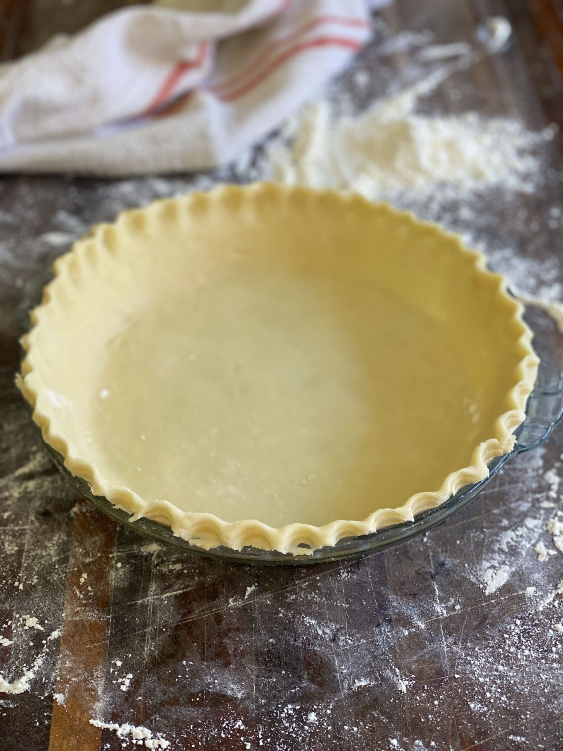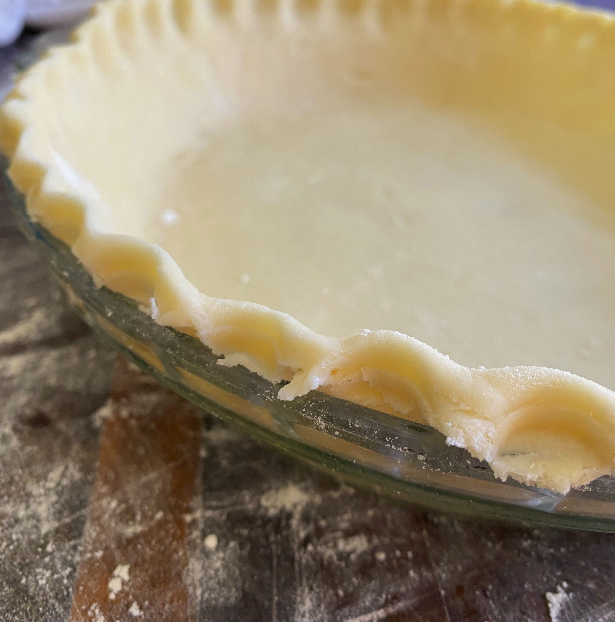 When ready to make the pie crust, roll out the dough on a lightly floured surface to about 3 mm thick. Place the pastry in a pie dish which have sprayed with Spray ‘n Cook. Cut the edges and crimp the edges with your fingers or use a fork. Keep until needed, no need for pre-baking.