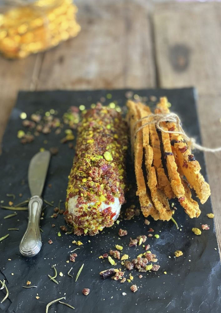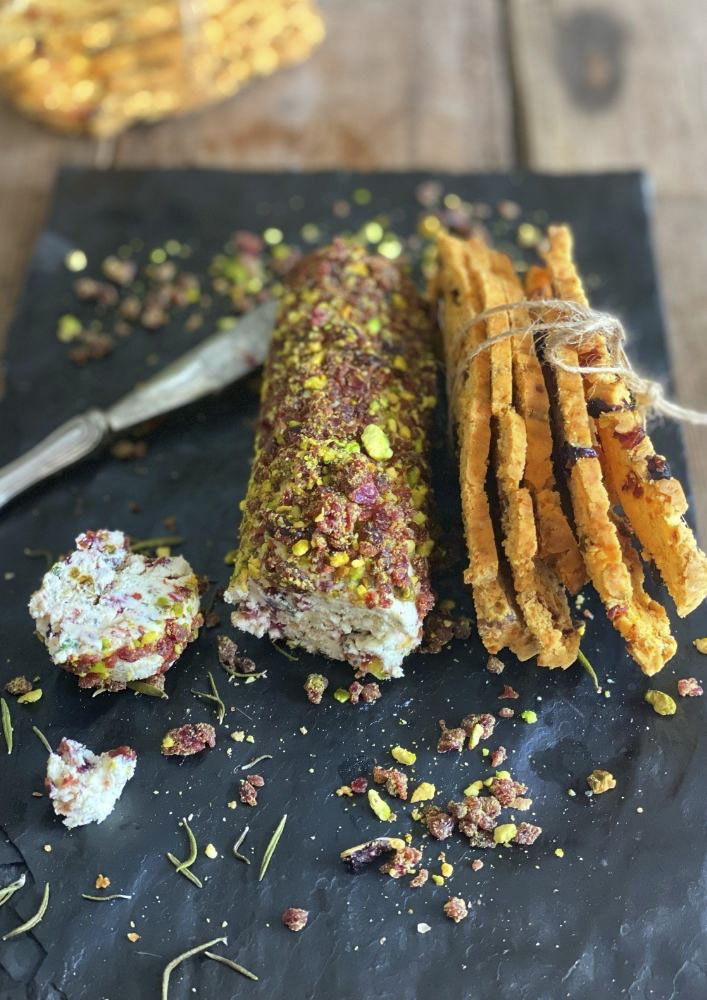 When ready to serve, remove from cling wrap and put on a wooden board and serve with crackers and chilled wine. You can drizzle the logs with honey if you choose to.