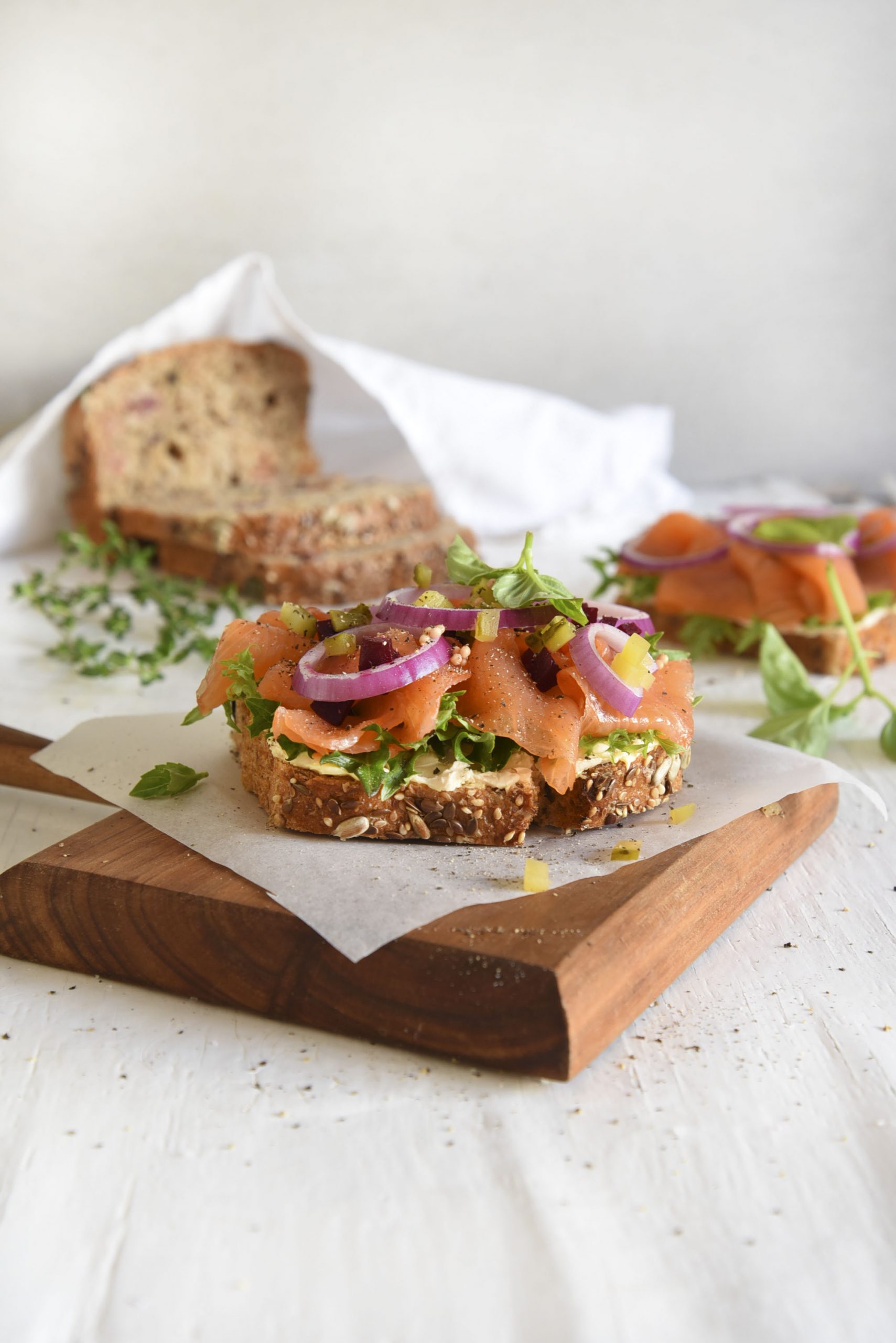8 slices wholewheat raisin bread – the sweetness of the raisins pair beautifully with the salmon.