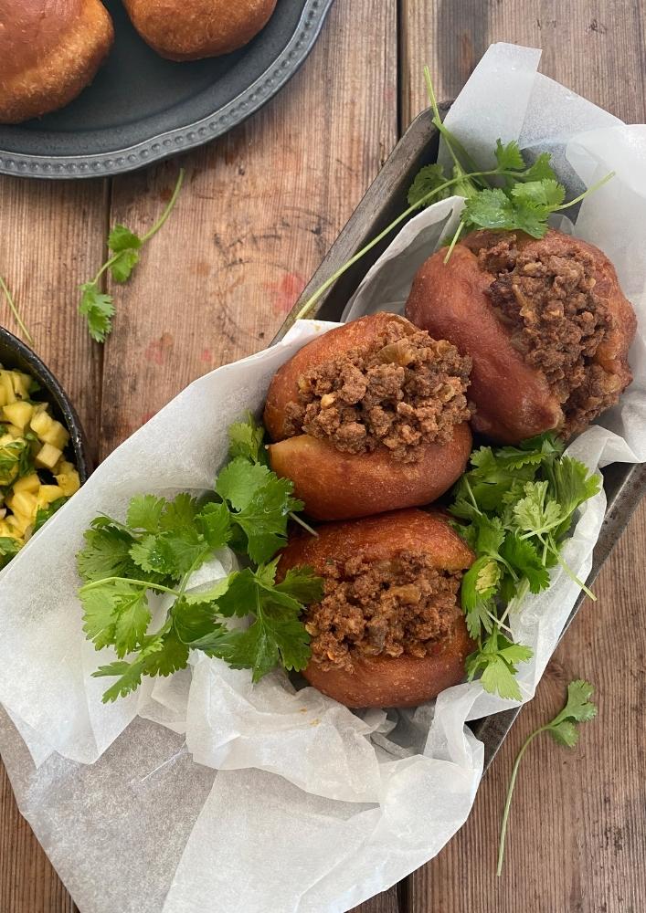 Curry Bunnies – homemade comfort food indeed. A Curry Bunny is a delicious fusion between a “vetkoek” and a Bunny Chow.