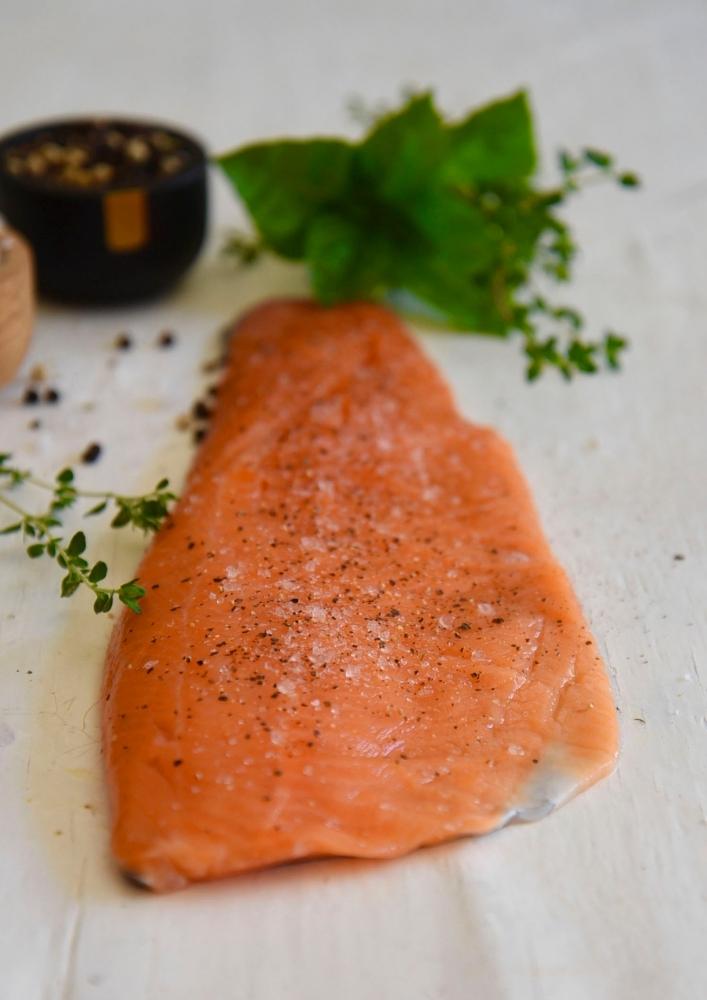 Trout is milder in taste and the flesh is more delicate. Salmon on the other hand has a richer flavor because of the higher fat content. Both Trout and Salmon are great sources of vitamins A, C, D, and E.