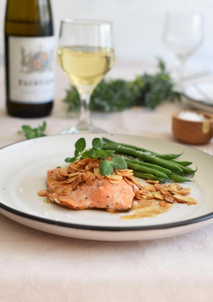 A Classic Trout Amandine takes less than 15 minutes from start to finish and all you need to serve with it is steamed green vegetables such as broccoli, asparagus or green beans. Nothing fancy, just simplicity done right.