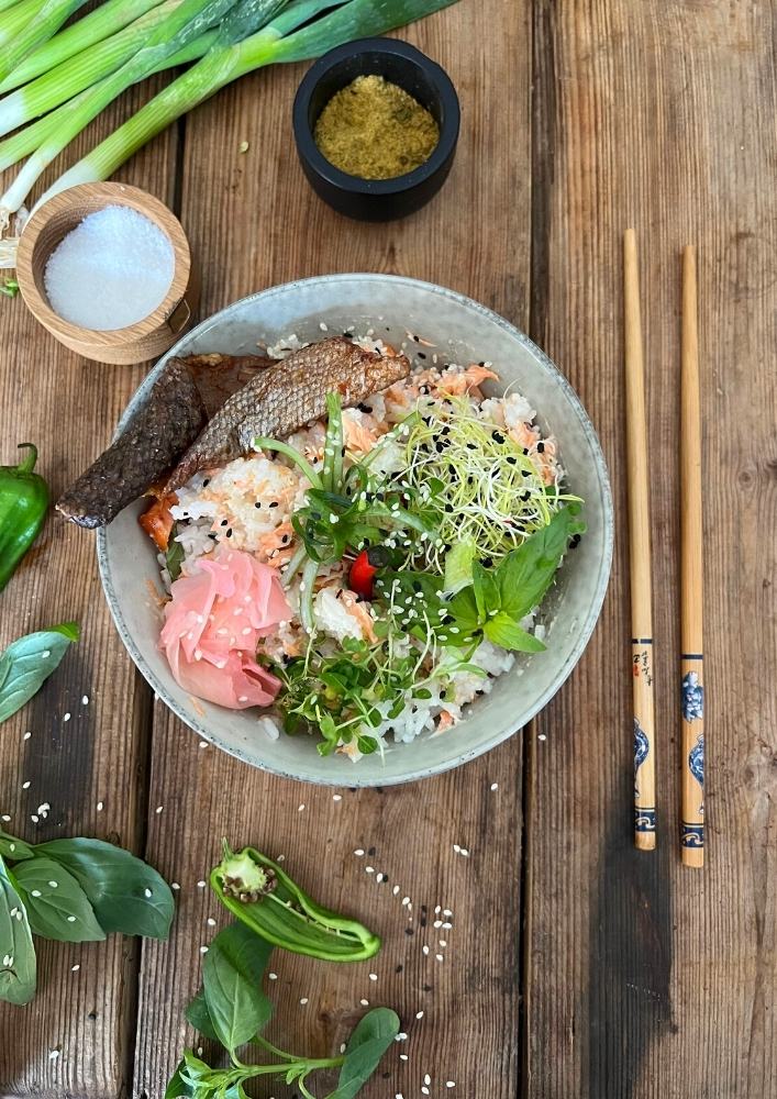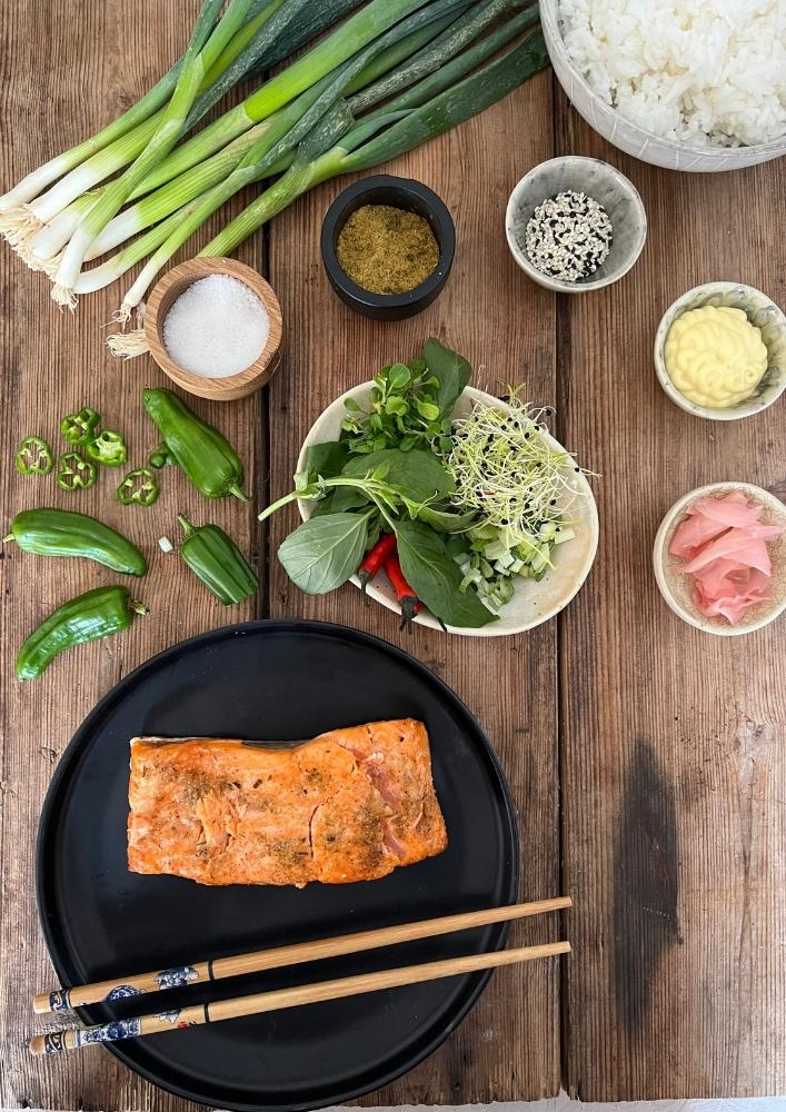 To make the salmon and rice bowl